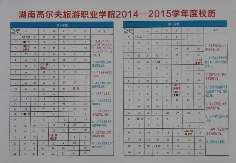 2014-2015学年度校历